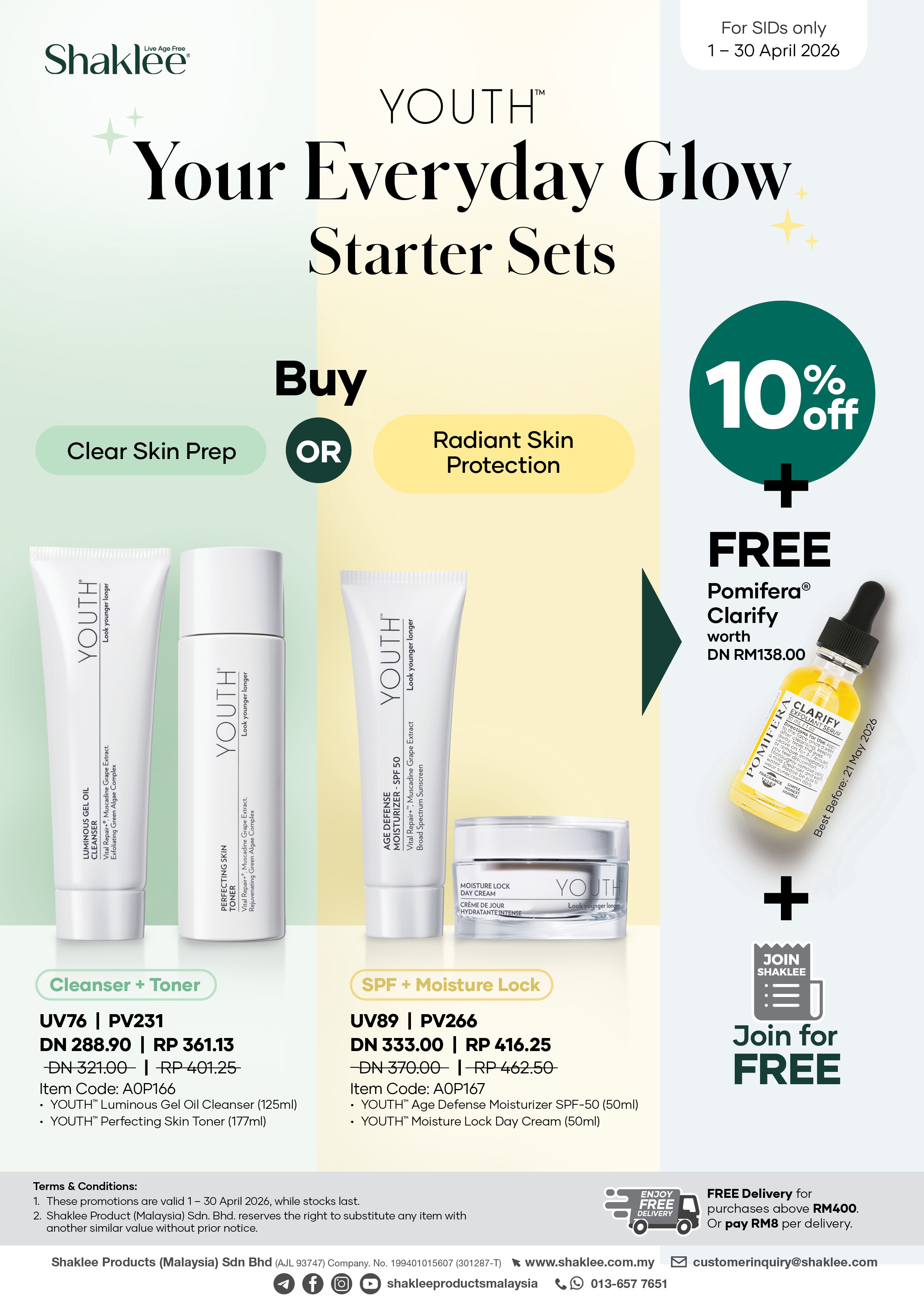 *YOUTH Cleanser + Toner @ 10% Off FREE Pomifera® Clarify